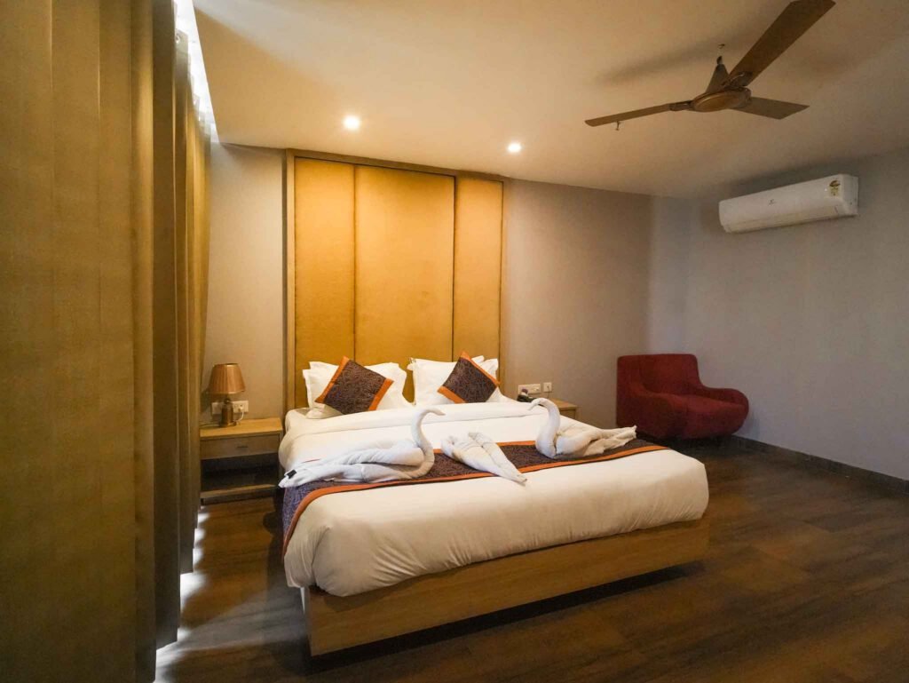 Banquet Hall Elegant space designed for hosting memorable events and special celebrations. In-house Restaurant Delightful dining experience offering a variety of delicious and freshly prepared meals. Bar Facility Relax and unwind with a premium selection of beverages in a stylish setting. Rooftop Dining Enjoy great food and ambiance with a refreshing rooftop dining experience. Spacious parking Ample parking space ensuring convenience and hassle-free vehicle access for guests. Lift / Elevator Smooth and easy access to all floors with modern lift facility for guests. Air-conditioned Rooms Well-cooled rooms designed to provide comfort and a relaxing stay in all seasons. Room Service Prompt room service ensuring food and assistance is available whenever you need it. Work Desk Dedicated workspace setup for guests who need comfort while working or planning. Power Backup Uninterrupted power supply ensuring a smooth and comfortable experience at all times. Secure Premises Safe and secure environment maintained with proper systems for guest safety. Event Hosting Well-equipped spaces designed for hosting events, parties, and corporate gatherings.